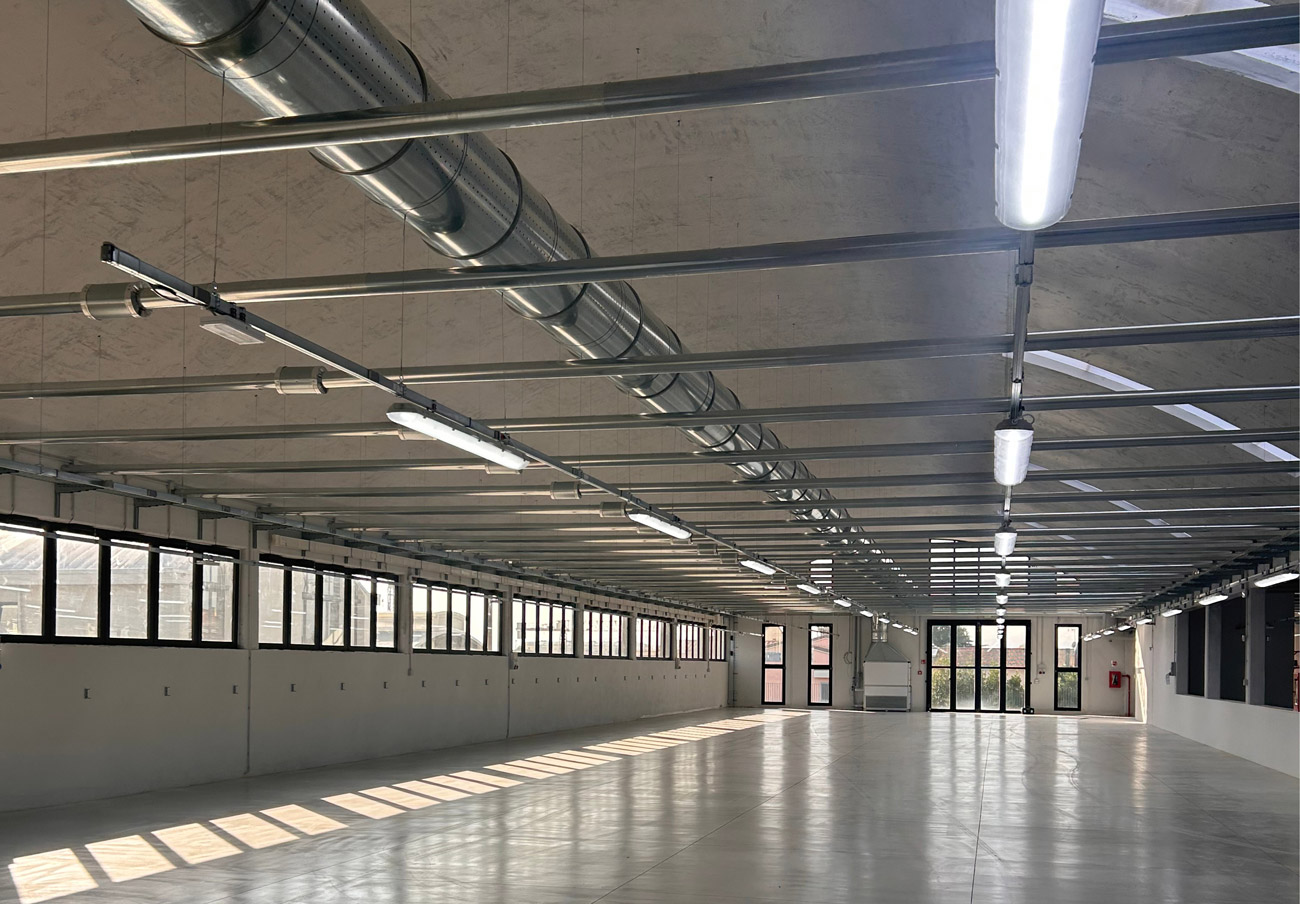 Il sistema idronico interno è progettato con terminali UTA (Unità di Trattamento dell’Aria) e tubazioni realizzate in acciaio microforato. Questo approccio consente una distribuzione ottimale del calore all’interno dell’ambiente, garantendo una regolazione precisa della temperatura. Le tubazioni in acciaio microforato consentono un trasferimento efficiente del calore, contribuendo a mantenere una temperatura confortevole all’interno della pelletteria.